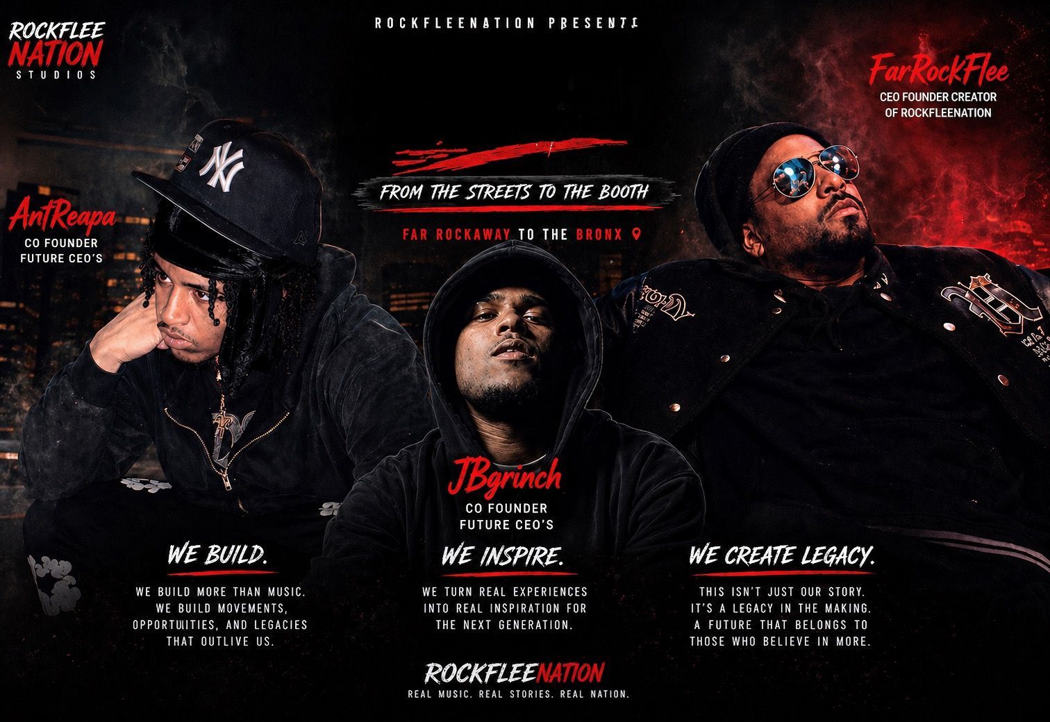 ROCKFLEENATION is led by its Founder and CEO, alongside the next generation of leadership. As Co-Founders and future executives, our family represents commitment, vision, and long-term growth in the music industry. Together, we are building a legacy focused on creativity, opportunity, and success for artists and our community.